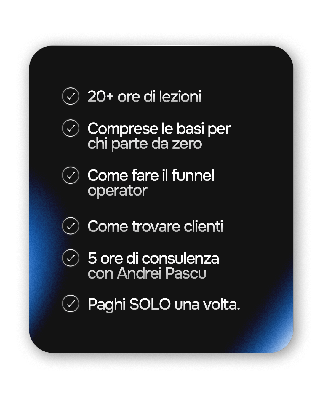 Probabilmente no. Comprare il corso è solo il primo passo. Devi studiarlo, applicare le info e impegnarti per settimane o mesi. L’obiettivo è chiudere i primi clienti, capire le basi e fare i primi soldi.